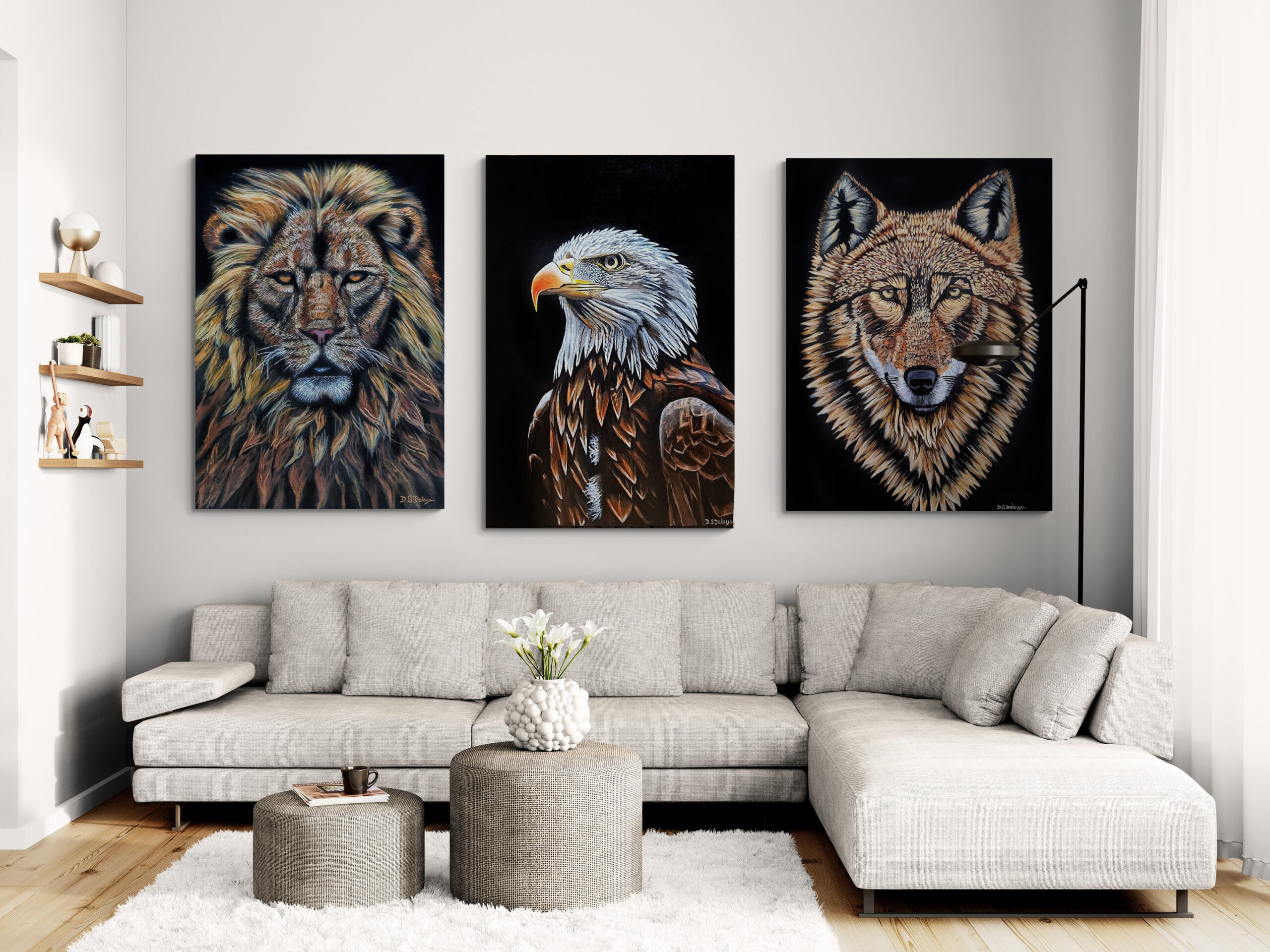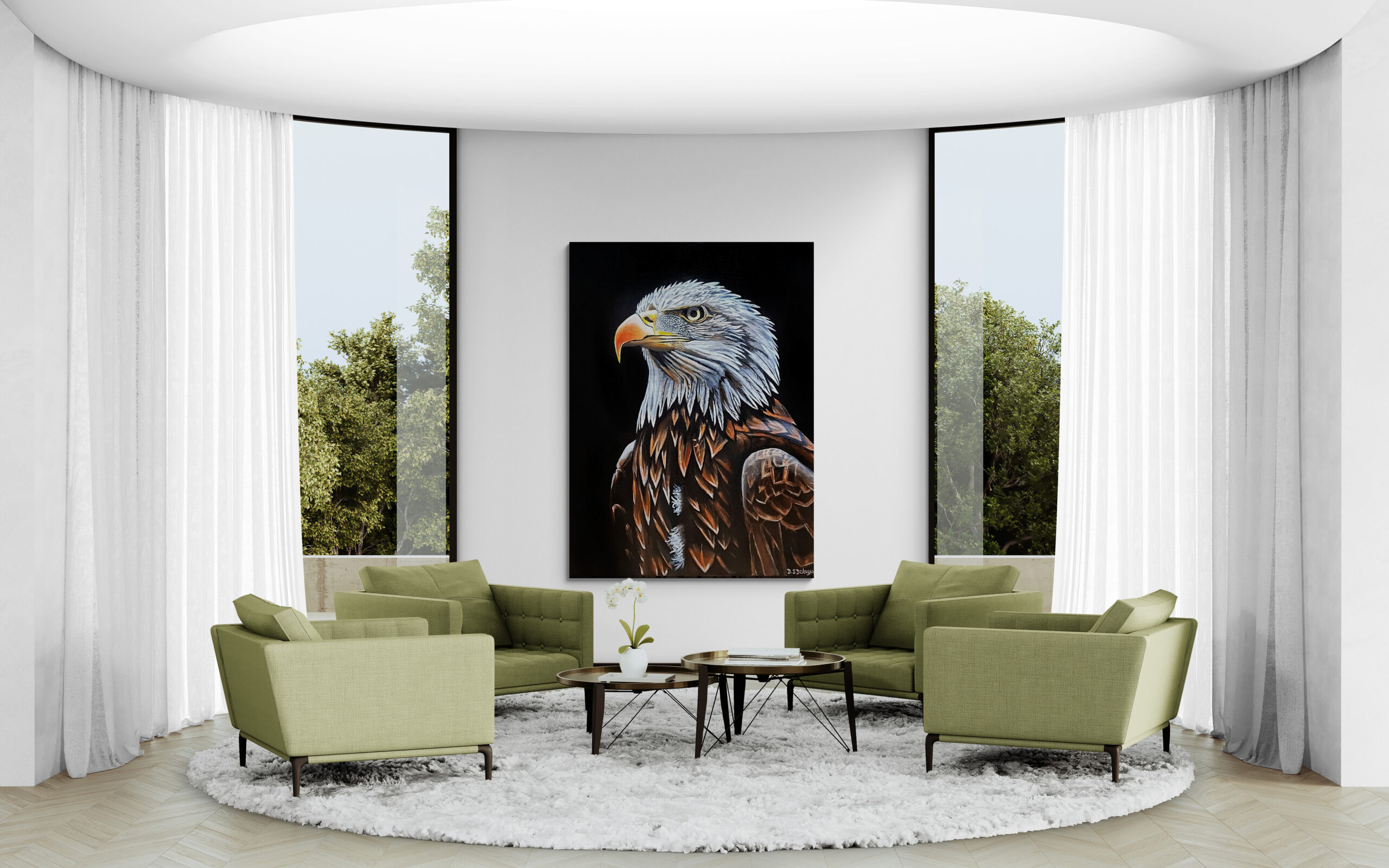 הנשר זו חייה עוצמתית ודורסת ושולטת בשמיים וצדה מהאדמה חייה עם המון כוח ואצילית הציור נותן נוחכות ותחושה של עוצמה